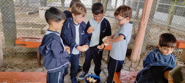 As vacas foram cuidadosamente alimentadas: as crianças entregavam o pão com cuidado e admiração, sentiram que as línguas são “gigantes” e amistosas . Foi uma descoberta sensorial memorável.