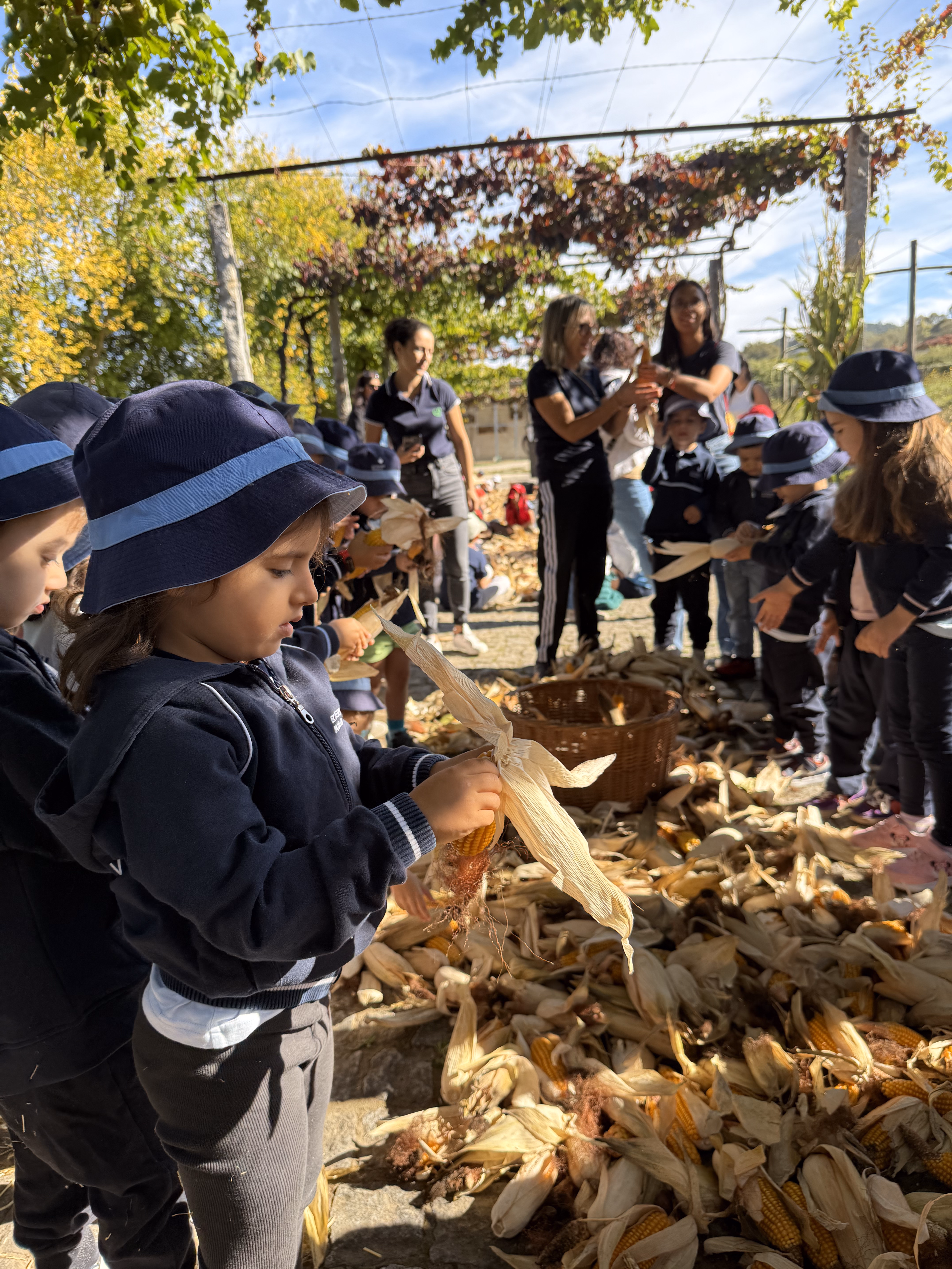 O evento recriou dois momentos emblemáticos do calendário rural: a desfolhada do milho e a vindima das uvas, proporcionando às crianças um contacto direto com práticas ancestrais que marcaram a vida comunitária da região.
