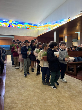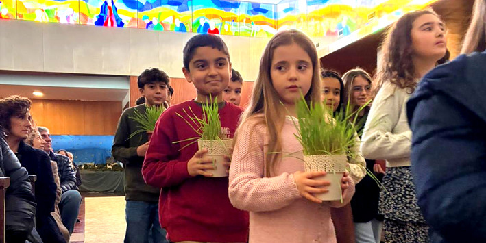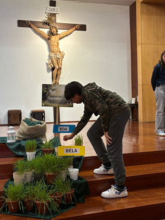 O Cortejo de Entrada foi particularmente expressivo. Desde o pré-escolar ao 3.º ciclo, os alunos avançaram em procissão levando consigo vasos com plantas, que foram colocados no altar, junto ao Jardim da Esperança. Este gesto tornou visível a caminhada comum de toda a comunidade educativa, onde cada etapa da vida contribui para um mesmo projeto de crescimento e de fé.