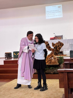 A Liturgia da Palavra conduziu a assembleia à certeza de que Deus vem salvar-nos e de que até o deserto pode florir quando o coração se abre à confiança. Neste contexto, a Festa da Vida dos alunos do 8.º Ano assumiu um lugar central. Durante a Ação de Graças, os catequizando apresentaram os dons que desejam enraizar nas suas vidas: uma vida Bela, Boa, Digna, Livre, Alegre e Santa. Cada uma destas palavras foi simbolicamente colocada e enraizada nos vasos, como sinal de compromisso pessoal e de crescimento interior.